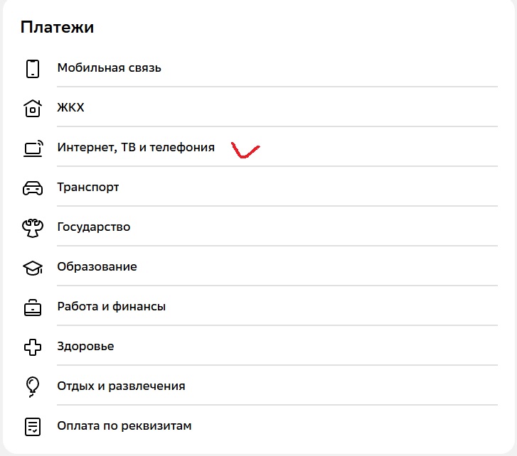 2. Выбираем раздел "Интернет, ТВ и телефония"».