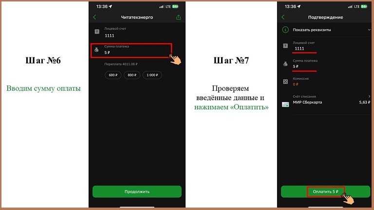 6. Вводим сумму платежа и оплачиваем услуги.
